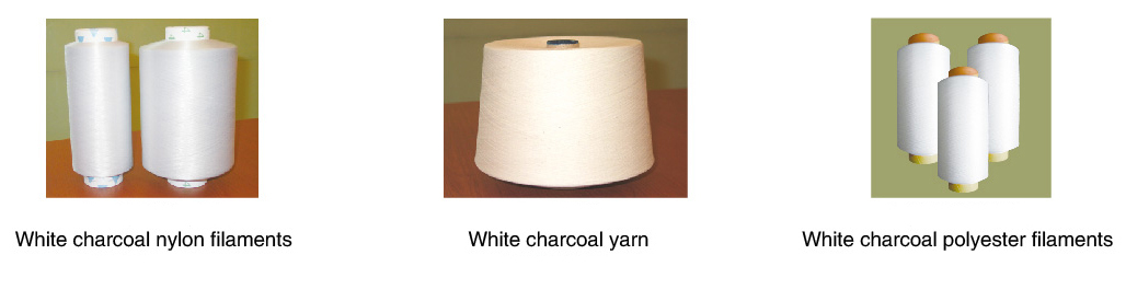 The function of white charcoal polyester fibers is similar to that of grey charcoal fibers, but the white fibers can be dyed into any light or bright colors, solving the color limitation problems of grey charcoal fibers.